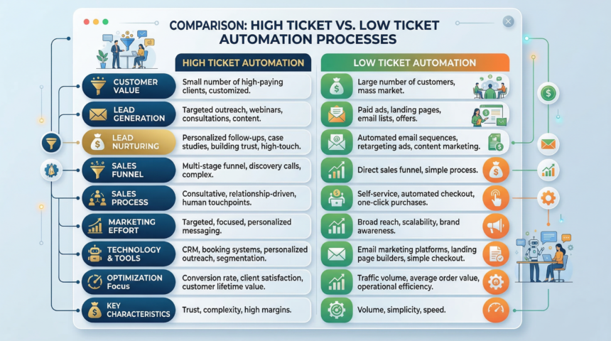 In contrast, high ticket vs low ticket automation in a premium environment focuses on nurturing. A high-ticket buyer needs more touches before they feel comfortable. Automation delivers case studies and testimonials over several weeks. This keeps your brand top-of-mind without manual outreach. By balancing high ticket vs low ticket automation, you service the masses while courting the elite.